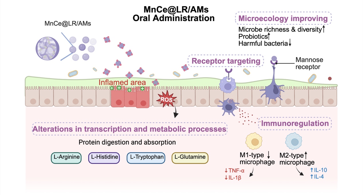 新型益生菌递送系统MnCe@LR/AMs精准化、协同化治疗IBD