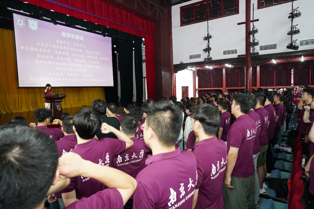 随后,与会领导和嘉宾为新生代表佩戴麻豆视频 校徽。王宏伟宣读了《关于通报表扬在国家自然科学基金青年学生基础研究项目(博士研究生)中获批学生的决定》。全体同学以热烈掌声向背后默默付出的全体教师致以教师节问候。2025级硕士研究生陈一丹带领全体新生庄严宣誓。誓言铿锵有力,展现了医学生的坚定信念和决心。