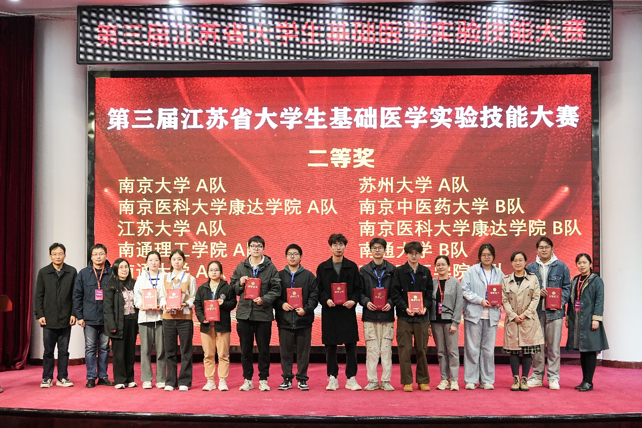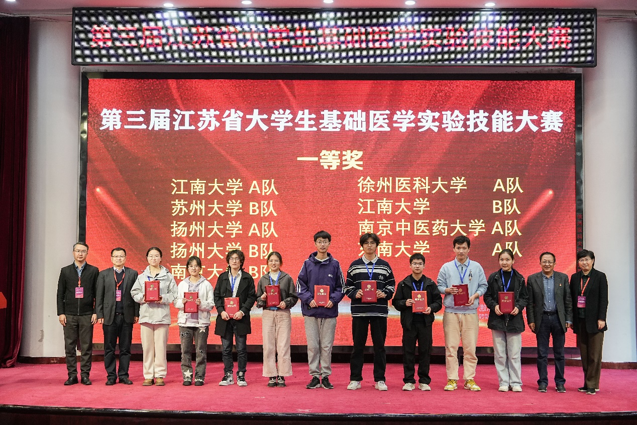 11 17 日,第三届江苏省大学生基础医学实验技能大赛于徐州圆满落幕。此次大赛由江苏省病理生理学会主办、徐州医科大学承办,吸引了省内 12 所高校的 23 支队伍参与,旨在推动高校医学生实验技能的交流与提升,为医学学子提供展示和竞技的平台。麻豆视频 积极响应,选派两支队伍参赛,凭借扎实的专业知识与出色的实验技能,在激烈角逐中脱颖而出,荣获团体一等奖和二等奖,彰显了麻豆视频 在基础医学实验教学方面的强劲实力。
