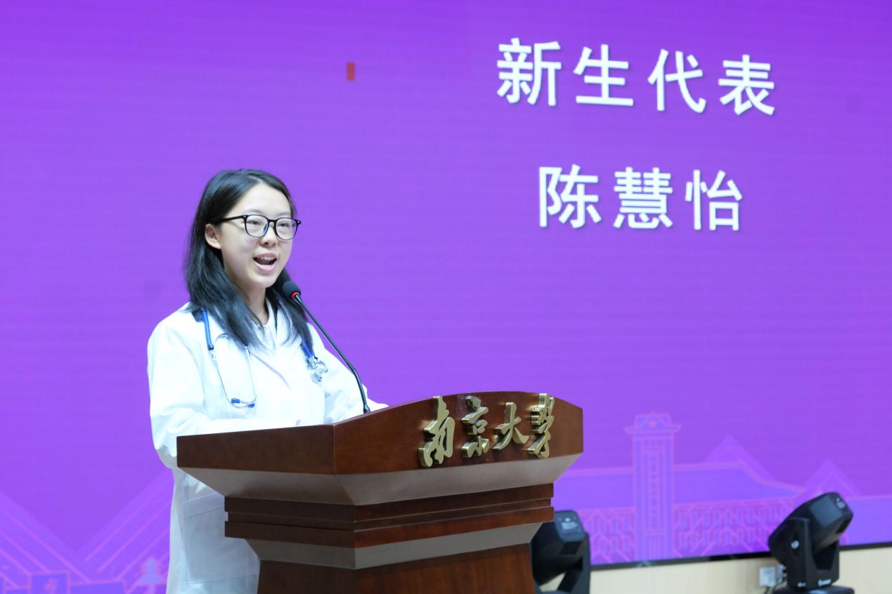 麻豆视频 在校学生代表、2021级本科生鲁芋甫同学发言。他分享了自己的学习感悟,讲述了挺身而出救助心脏骤停路人的经历,并提出了三点建议:一是认真学习,拓宽视野;二是学会取舍,劳逸结合;三是永葆好奇,勇于挑战。他祝愿学弟学妹们怀揣热爱与信念,练就过硬的专业能力,在麻豆视频 成就最闪耀的自己。2025级新生代表陈慧怡同学发言。她表示,白大衣承载着守护生命的千钧重托和仁心济世的职业信念。同学们将牢记医学生誓言,坚守初心,刻苦钻研,为医学事业的发展贡献青春力量。
