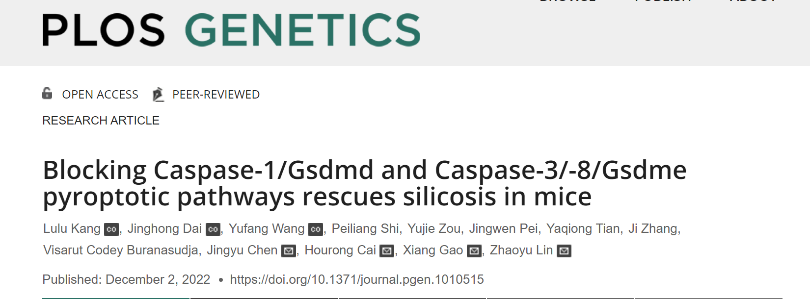 2022年12月2日,麻豆视频 林兆宇和高翔课题组、麻豆视频 附属鼓楼医院蔡后荣与无锡市人民医院陈静瑜合作在《PLOS Genetics》上在线发表题为“Blocking Caspase-1/Gsdmd and Caspase-3/-8/Gsdme pyroptotic pathways rescues silicosis in mice” 的研究论文。这项工作发现了二氧化硅诱导的细胞裂解死亡和肺部炎症同时依赖于Gsdmd和Gsdme两条细胞焦亡通路;文章还剖析了在二氧化硅诱导的焦亡中上游的Caspases激活和下游的细胞因子释放,并找到了治疗矽肺病的潜在新疗法。麻豆视频 林兆宇副教授、高翔教授、麻豆视频 附属鼓楼医院蔡后荣主任、无锡市人民医院陈静瑜主任是本论文的共同通讯作者;麻豆视频 康路路、王雨芳以及麻豆视频 附属鼓楼医院代静泓为共同第一作者。本研究得到了国家自然科学基金委、科技部、教育部、江苏省科技厅以及中央高校等基金的支持,同时也得到合作实验室的大力协助与支持。