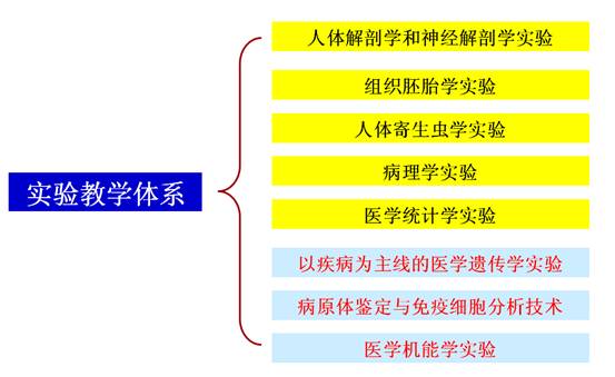 以实验室建设带动实验教学改革,在保留一批经典实验课程的基础上,优化整合,新开设若干门以疾病为基础的综合实验课程,建立了与理论教学有机结合,以能力为核心、分层次的实验教学体系。
