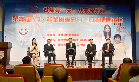 胡勤刚会长在论坛中指出,口腔疾病是影响我国居民健康的常见病和多发病,口腔疾病常常是全身许多重大系统性疾病的重要发病因素。例如心脑血管病、糖尿病等,严重影响全身健康。江苏省口腔医学会在“9.20全国爱牙日”,倡导全民关注口腔健康,开展民众参与的口腔健康宣教与义诊,对提高大众口腔保健意识,丰富大众口腔保健知识,养成良好口腔卫生习惯以及正确就医行为都是很有意义的。要想人生健康,必须从“齿”开始,让我们“健康每一天,从爱牙开始”。