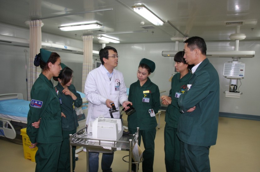援疆期间,朱章华同志主持开展院内授课1次;ICU授课8次,设备操作技术演示6次;为ICU收住治疗了重症肺炎、严重心律失常等多种危重疾病患者;开展了无创通气治疗II型呼吸衰竭、床边呼气末二氧化碳连续监测等新技术,使ICU收治患者从最初的基本停顿状态,逐渐发展到基本满负荷工作状态,大大提高了ICU的床位使用率。同时为ICU申请了一项自治区继续教育项目《脓毒性休克血流动力学监测与支持》,效果显著。