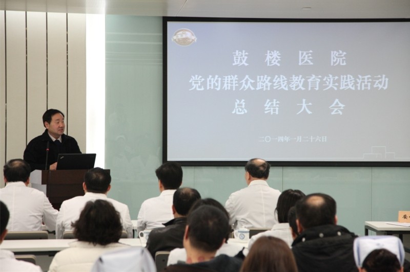1月26日下午,党的群众路线教育实践活动总结大会在会议中心3号学术报告厅召开。市委督导三组全体成员、医院领导班子全体人员、总支书记、支部书记、处以上干部、部分职能部门负责人、大科主任、近5年退休的领导班子成员、职工代表、离退休人员代表近80余人参加了会议。