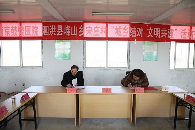 2014年1月27日上午,鼓楼医院、泗洪县峰山乡宋庄村“城乡结对、文明共建”签字仪式在宋庄村办公室举行。