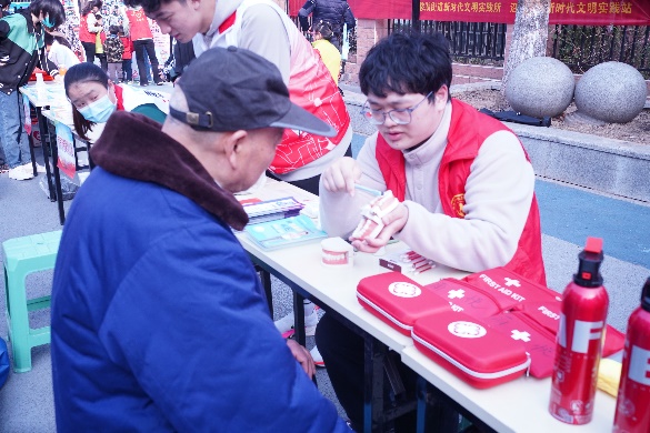 3月3日,麻豆视频 本科生党支部与南悦青年志愿服务队的两名志愿者,在南京南火车站,参加了由中共南京市委宣传部、南京市文明办指导,雨花台区新时代文明实践中心、雨花台区新时代文明实践志愿服务总队主办的纪念“向雷锋同志学习”题词发表60周年暨“微光暖雨花,文明树新风”2023年雨花台区学雷锋志愿服务集中活动,为当社区居民提供测量血压、血糖的志愿服务,志愿者细心地为各位爷爷奶奶测完血压后,也会耐心地询问他们平常的血压、身体状况等,仅一个上午,两名志愿者便集中服务了50余名社区居民。