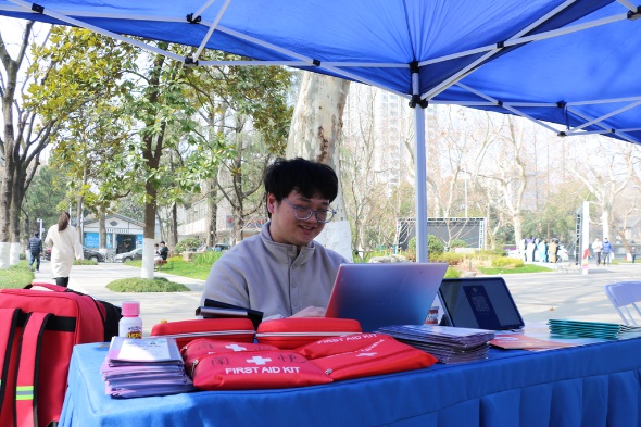 3月5日,在学雷锋纪念日当天,麻豆视频 团委南悦青年志愿服务队受邀参加麻豆视频 2023年志愿服务文化节之“3·5学雷锋纪念日”麻豆视频 志愿服务交流会活动,在麻豆视频 鼓楼校区南园主干道摆起志愿服务展台,为南大师生讲解心肺复苏、创伤包扎等急救知识。服务队志愿者将心肺复苏演示用的假人搬到现场,让同学们能够在实践练习,掌握急救知识,提高健康意识。此外,团队也在活动现场重点展示了由南悦青年志愿服务队组织的麻豆视频 十佳志愿项目——“大山里的健康课”少年儿童生命健康科普活动,并向同学们介绍了团队新学期的各项志愿活动。