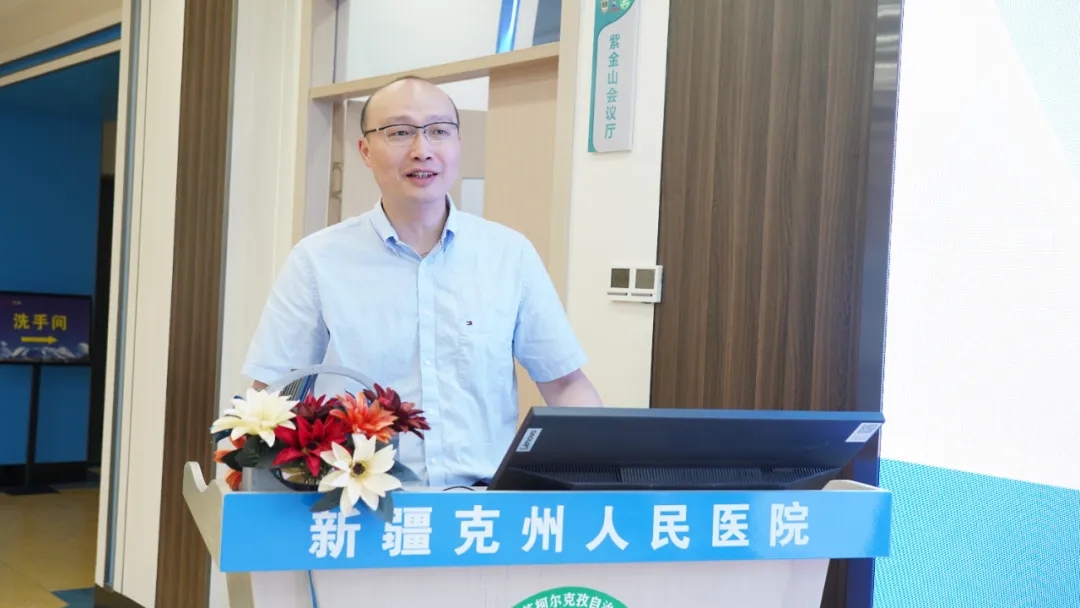 克州人民医院党委书记艾斯卡尔·白西尔首先欢迎一行到来。他表示,克州人民医院在江苏对口支援下实现了质的飞跃,带领医院在医院管理、学科建设、科研教学等方面取得了突出成效,希望麻豆视频 能常指导、常交流。