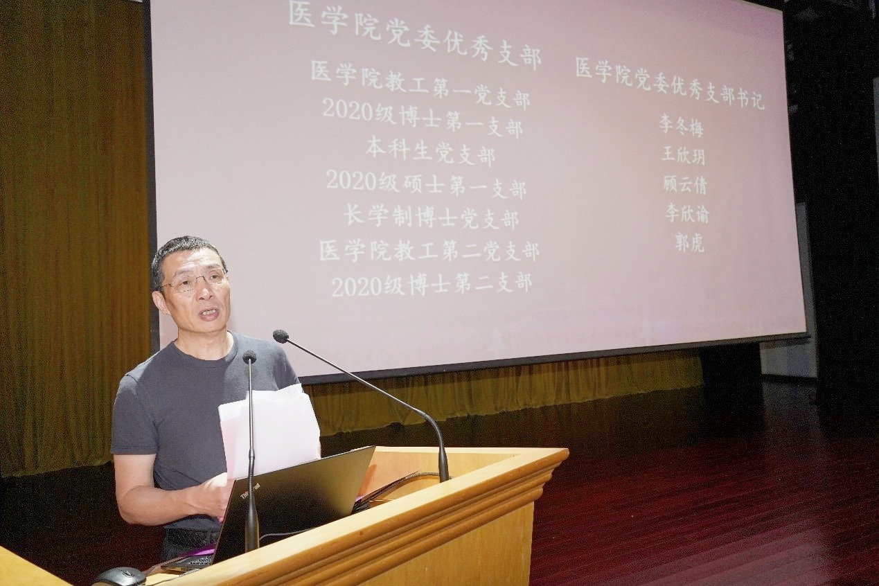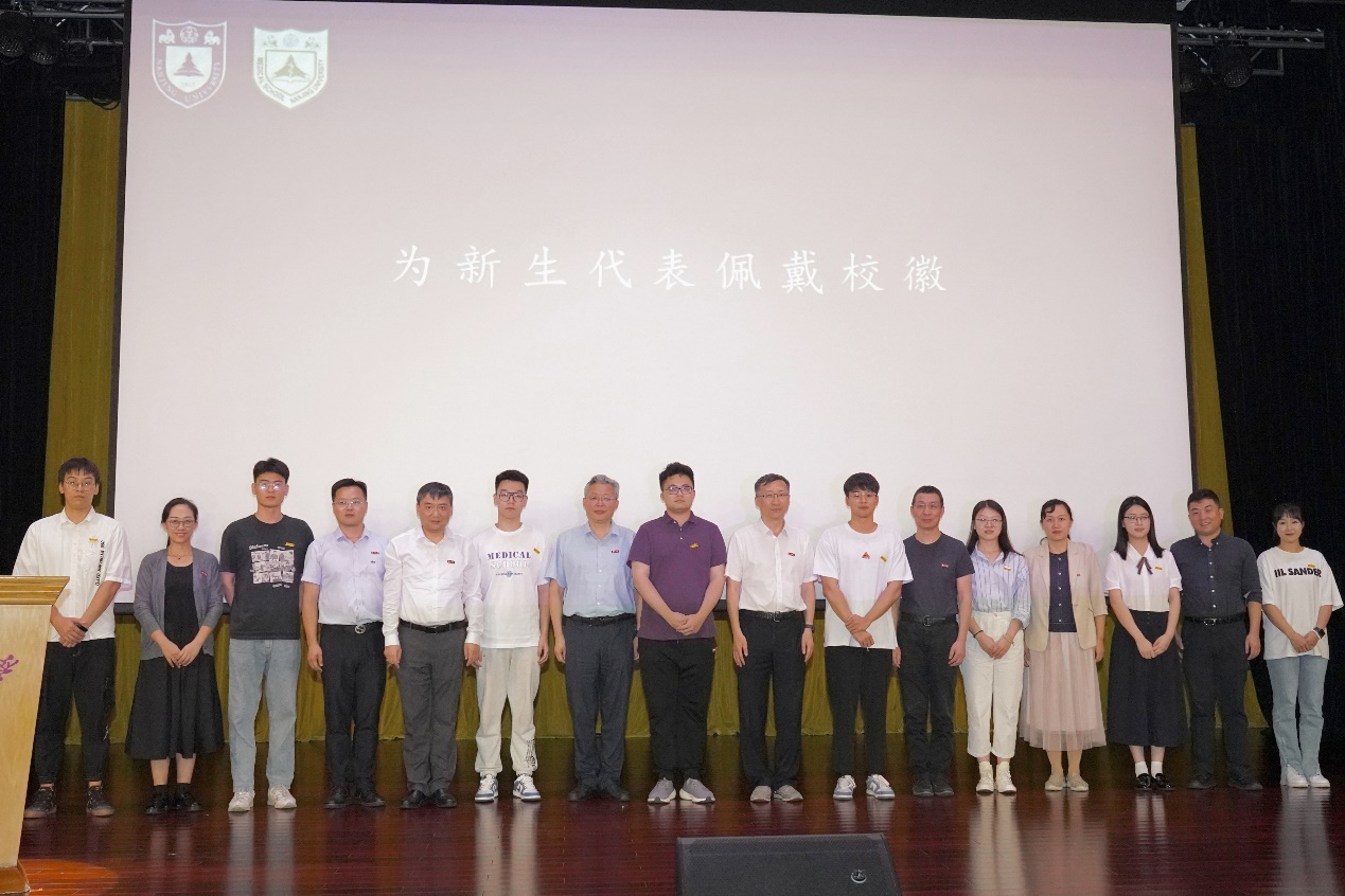随后,与会领导和嘉宾为新生代表佩戴校徽。蒋青副院长宣读关于表彰2023年校优秀博士硕士学位论文作者及指导教师的决定和麻豆视频 党委党内表彰决定。在对获奖教师和学生代表进行表彰后,2023级博士研究生沈韬带领全体新生进行庄严的医学生宣誓。最后,开学典礼在集体奏唱麻豆视频 校歌中落下帷幕。