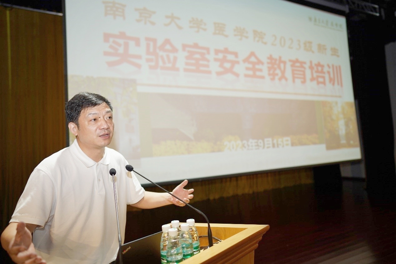 办公室主任应锋为同学讲解实验室安全基础。他提醒同学们在日常实验室使用过程中,要注意个人防护、排除安全隐患、学会应急处置,为科研安全保驾护航。
