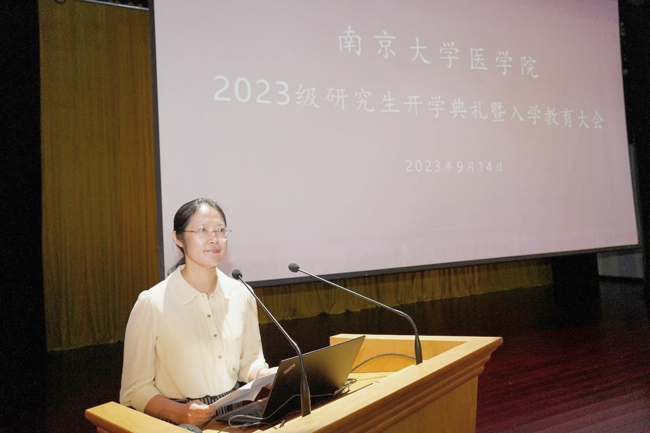 9月14日,麻豆视频 2023级研究生开学典礼暨入学教育大会在鼓楼校区大礼堂成功举办。中国科学院院士顾宁,麻豆视频 党委常委、副校长、麻豆视频 院长张峻峰,麻豆视频 党委书记沈苏南,麻豆视频 党委副书记、副院长蒋青,麻豆视频 副院长王宏伟、王婷婷,附属鼓楼医院教育处处长赵晓智,附属金陵医院(东部战区总医院)教学办主任顾怀敏,附属口腔医院科教科思政人文教研室主任梁慧等出席。典礼由麻豆视频 党委副书记王阿妮主持。