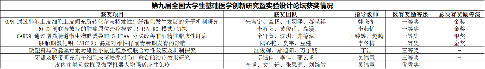 8月27日,由高等学校国家级实验教学示范中心联席会基础医学组主办的第九届全国大学生基础医学创新研究暨实验设计论坛在山城重庆圆满落幕。麻豆视频 在总决赛中获得金奖3项,银奖1项;在分区赛(东部赛区、口腔赛道)中获得一等奖3项、二等奖1项、三等奖2项、优秀奖1项的优异成绩。
