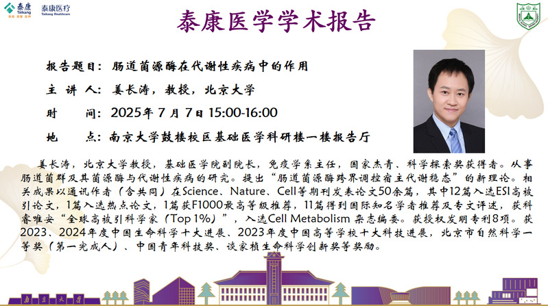 2025.07.07泰康医学学术报告-姜长涛教授:肠道菌源酶在代谢性疾病中的作用