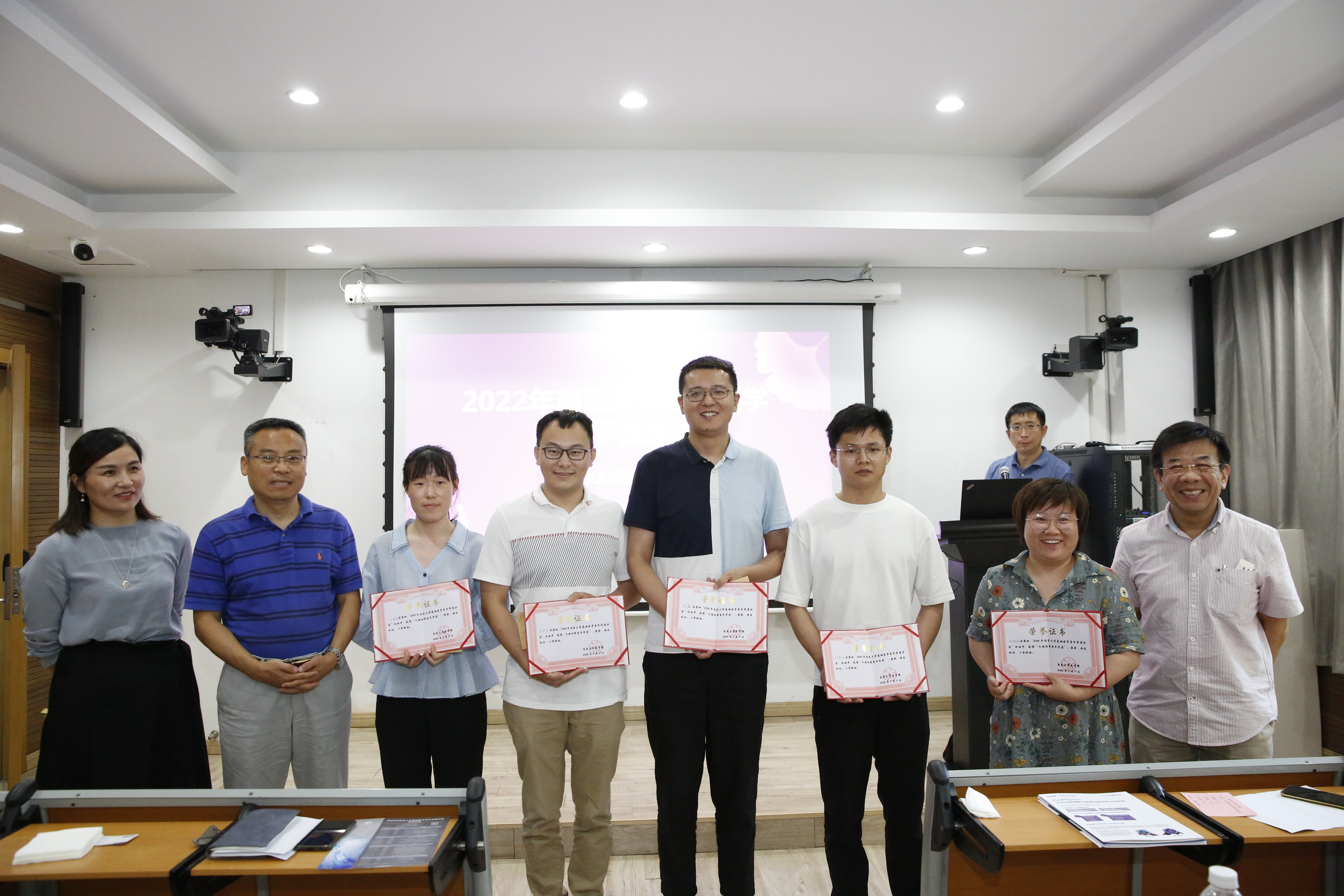 Professor Wu, Professor Yang and Ms Chen presented the third prize to Chen Deyan, Xu Dengqiu, Chen Xin, Zhao Wukui and Liu Chunyan